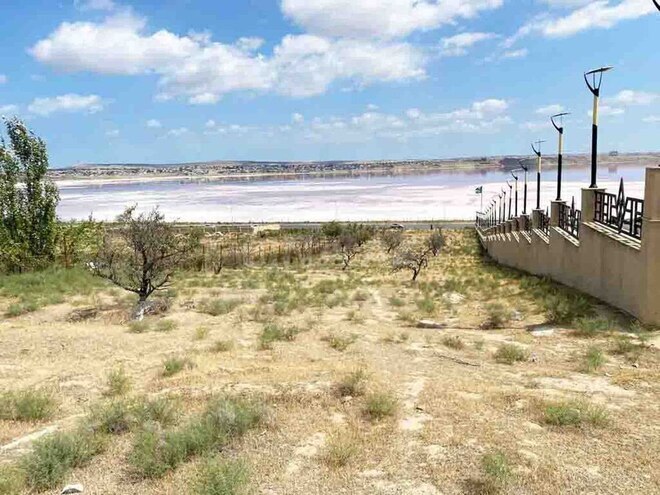 Ru- Срочно продается земельный участок как под дом, так и под коммерческий объект, рядом с дорогой с прекрасным видом на соленое озеро!!! (передняя часть участка открыта к дороге)
