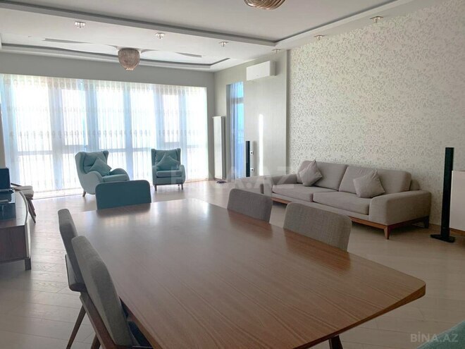 Mənzilin ümumi sahəsi 200 kv.m-dir, böyük terras və dənizə açılan eyvanı var. Mənzil əla təmirlidir, internet, plazma TV, mərkəzi istilik sistemi və kondisionerlə təmin olunub. Quraşdırılmış mətbəx mebeli və bütün lazımi məişət texnikası mövcuddur. Binanın mühafizə olunan həyəti və yeraltı qarajı da var.
