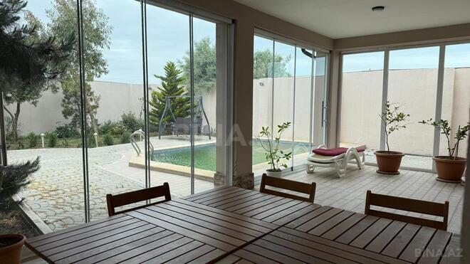 Evin ümumi sahəsi 280 m²-dir. 1-ci mərtəbədə geniş qonaq otağı, mətbəx (soyuducu, plitə, soba, mikrodalğalı soba daxil), anbar otağı, sanitar qovşaq və sauna üçün nəzərdə tutulmuş hamamı olan otaq (yataq otağı və ya cabinet kimi istifadə etmək olar) var. 1-ci mərtəbədən çox geniş və qapalı terrasa çıxış var. Terras ilboyu istifadəyə yararlıdır. 2-ci mərtəbədə 3 yataq otağı, camaşır otağı (paltaryuyan daxil), 2 sanitar qovşaq (hamam və tualet) yerləşir. 3-cü mərtəbə mansard tipli hündür otaqdır və uşaqlar üçün oyun otağıdır. Bütün mərtəbələr ayrı ayılıqda kondisioner (cəmi 4 ədəd) ilə təmin olunub. Həmçinin evə bitişik çöl istifadə üçün tualet və geniş texniki otaq mövcuddur. Texniki otaqda 2 kombi, su üçün filter, motorlar və yumuşatıcı, termo izolyasiya olunmuş 2 tonluq təmiz su çəni var. Həyətdə əlavə olaraq 6 tonluq dəmir su çəni mövcuddur. Həyətdə isti yay ayları üçün ideal olan açıq hovuz mövcuddur. Bağ baxımlıdır və yaşıllıqla əhatələnmişdir. 100-dən meyvə (hamısı bar verən əncir, üzüm, alma, badam, tut, heyva, gavalı, nar, yapon iydəsi, innab, armud, ərik və yaşlı zeytun) və dekorativ (6-7 m hündürlüyündə eldar şamı, evkolipt, limonnı şam) ağacları var. Bağ evi 2019-cu ildə şəxsi istifadə üçün keyfiyyətli materiallardan inşa edilib. Təmiz hava axını üzərəində yerləşdiyi üçün daima sərin və sağlamlığa xeyirli havası var. Bağ mebellər ilə billikdə satılır. Evimi özüm satıram və xahiş edirəm vasitəçilər narahat etməsin.